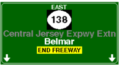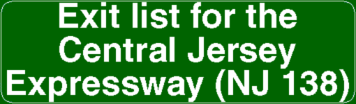 | Central Jersey Expressway (NJ 138) Eastbound | Central Jersey Expressway (NJ 138) Westbound | ||||||||||||||||||||||||||