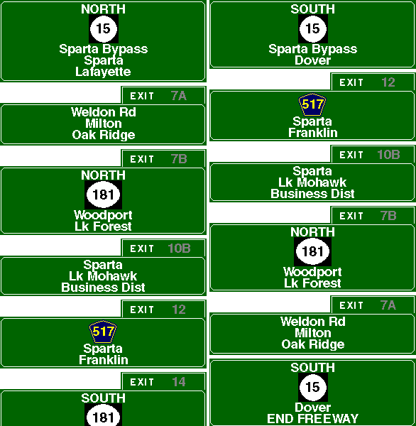 Exit list for the Sparta Bypass (NJ 15). Exit graphics courtesy of Jeff Taylor and Scott Oglesby. |