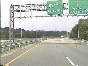 | This is the Sparta Bypass, NJ 15 north, north of exit 7(North NJ 181, Weldon Road, Milton, Oak Ridge, Woodport, Lake Forest) in Jefferson Township. Filmed August 24, 2000. |