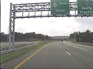 | This is the Sparta Bypass, NJ 15 north, north of exit 10(Sparta, Lake Mohawk, Business District) in Sparta Township. Filmed August 24, 2000. |