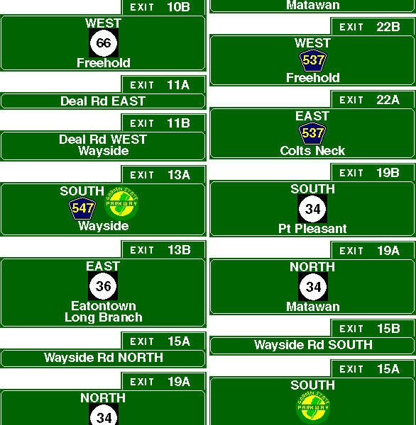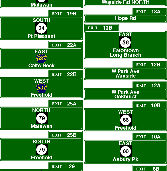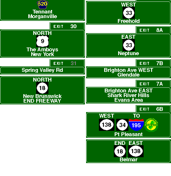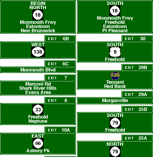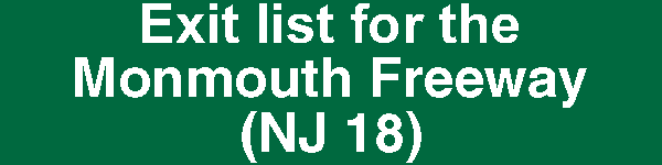Exit list for the Monmouth Freeway (NJ 18). Exit graphics courtesy of Jeff Taylor and Scott Oglesby. |