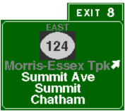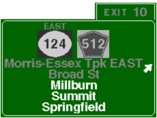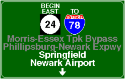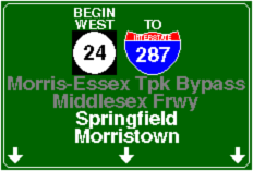 | Morris-Essex Turnpike Bypass (NJ 24) Eastbound | Morris-Essex Turnpike Bypass (NJ 24) Westbound | ||||||||||||||||||||||||||||||||||||||||||||||