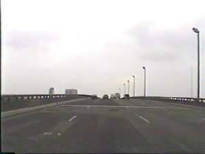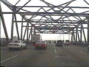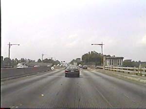 | This is the Secaucus Bypass, NJ 3 east, east of exit 4(NJ 21, Newark, Passaic) crossing the Passaic River from Clifton to Rutherford Boro. The old draw bridge just ahead is slated to be replaced in the next 10 years. Filmed August 24, 2000. |