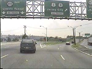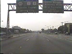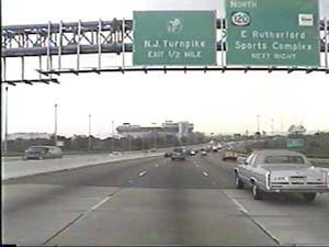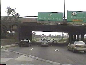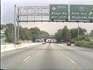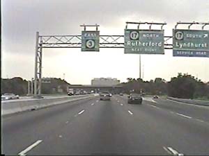 | This is the Secaucus Bypass, NJ 3 east, at exit 6(NJ 17, Service Road, Lyndhurst, Rutherford) in Rutherford Boro. Filmed August 24, 2000. |