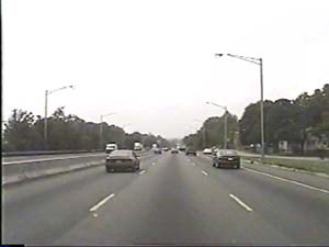 | This is the Secaucus Bypass, NJ 3 west, at exit 6(NJ 17, Service Road, Rutherford, Lyndhurst) in Rutherford Boro. Filmed August 24, 2000. |