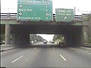 | This is the Secaucus Bypass, NJ 3 east, at exit 4(NJ 21, Newark, Passaic) in Clifton. Filmed August 24, 2000. |