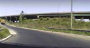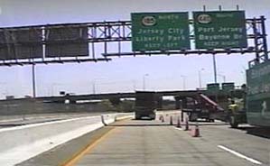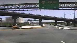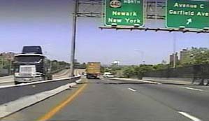 | This is the Cross Bayonne Connector (NJ 440) northbound at Exit 23(Avenue C, Garfield Avenue) in Jersey City. Filmed May 15, 2001. |
