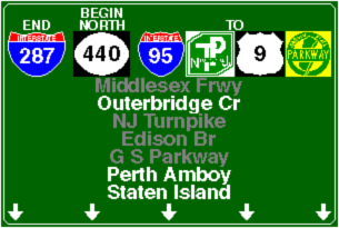 | Connecting Lists NJ 440 NORTH / I-287 NORTH I-95 (Eastern Route) I-95 (Western Route) NJTP GSP US 9 Other Lists Dan Moraseski's List pictures / map / exit list / article (Steve Anderson) Back to New Jersey Expressways and Tollways |