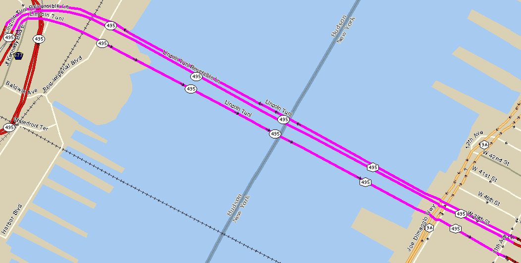 | Connecting Maps NY 495 EAST / NJ 495 WEST Other Maps NJDOT's Straight Line Diagram pictures / map / exit list / article (Steve Anderson) Back to New Jersey Expressways and Tollways |