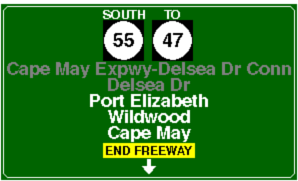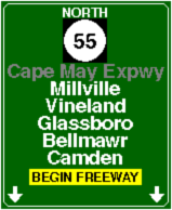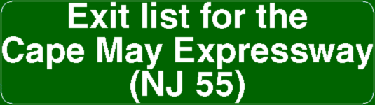 | Cape May Expressway (NJ 55) Northbound | Cape May Expressway (NJ 55) Southbound | ||||||||||||||||||||||||||||||||||||||||||||||||||||||||||||||||||||||||||||||||||||