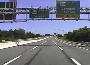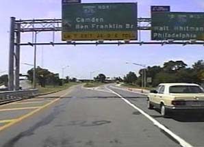 | This is the Walt Whitman Bridge Approach (NJ 76C) southbound north of Exit 1(North US 130, Camden, Trenton) in Camden. Filmed August 21, 2000. |