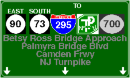 | Betsy Ross Bridge Approach (NJ 90) Eastbound | Betsy Ross Bridge Approach (NJ 90) Westbound | ||||||||||||||||||||||||