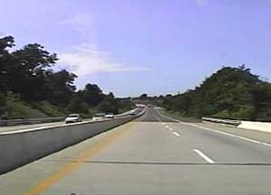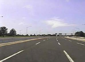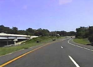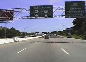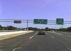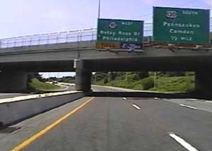 | This is the Betsy Ross Bridge Approach (NJ 90) westbound just east of Exit 1(South US 130, Pennsauken, Camden) in Pennsauken Township. Filmed August 21, 2000. |