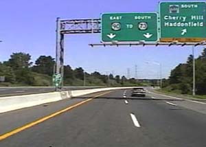 | This is the Betsy Ross Bridge Approach (NJ 90) eastbound at Exit 2(South CR 644, Cherry Hill, Haddonfield) in Pennsauken Township. Filmed August 21, 2000. |