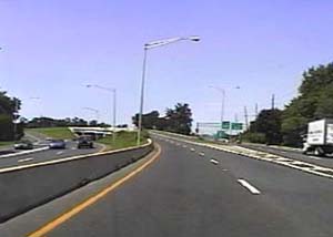 | This is the beginning of the Betsy Ross Bridge Approach (NJ 90) eastbound in Pennsauken Township. Filmed August 21, 2000. |