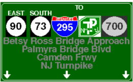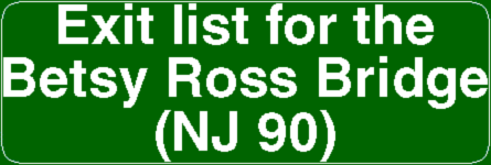 | Betsy Ross Bridge (NJ 90) Eastbound | Betsy Ross Bridge (NJ 90) Westbound | |||||||||||||||||||