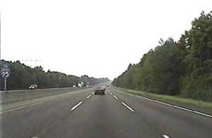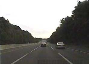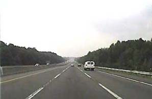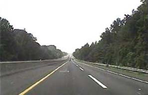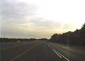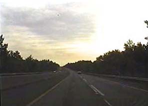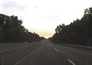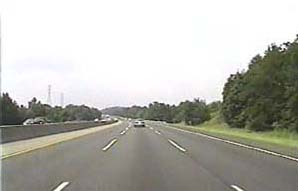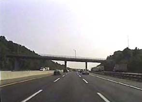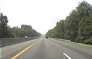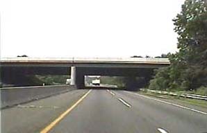 | This is the New Jersey Turnpike (I-95) southbound north of Exit 7(US 206, Bordentown, Trenton) in Hamilton Township. The dip in the roadway here is caused by the valley of the Crosswicks Creek, which the turnpike crosses just ahead. Filmed August 16, 2000. |