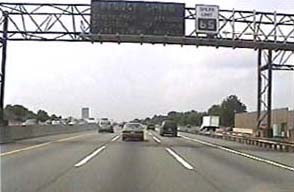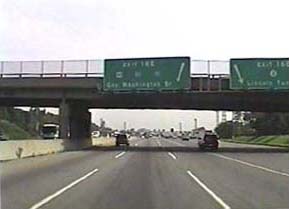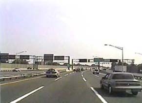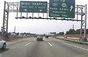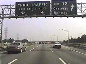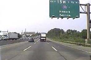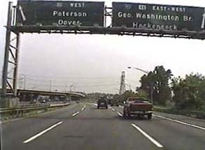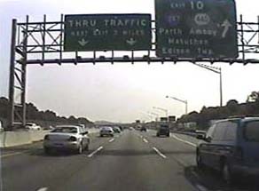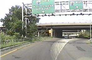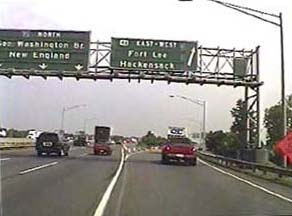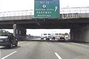 | This is the New Jersey Turnpike car lanes (I-95) northbound at Exit 11(Garden State Parkway, Woodbridge) in Woodbridge Township. Filmed August 9, 2000. |