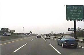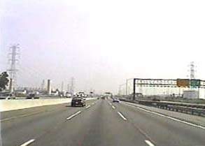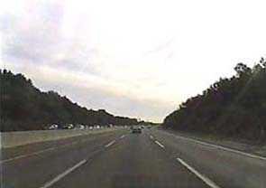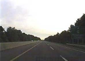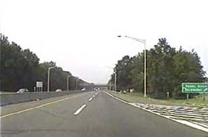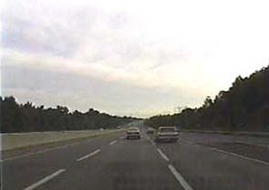 | This is the New Jersey Turnpike car lanes (I-95) southbound just north of Exit 11(US 9, Garden State Parkway, Woodbridge, The Amboys, Shore Points) in Woodbridge Township. Filmed August 7, 2000. |