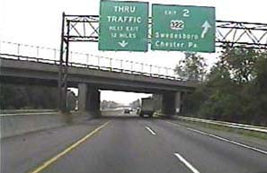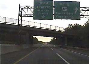 | This is the New Jersey Turnpike (NJ 700) northbound at Exit 2(US 322, Swedesboro, Chester Pa) in Woolwich Township. Filmed July 23, 2000. |