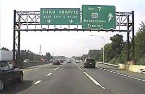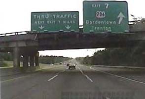 | This is the New Jersey Turnpike (I-95) southbound at Exit 7(US 206, Bordentown, Trenton) in Bordentown Township. Filmed August 16, 2000. |