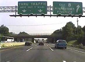 | This is the New Jersey Turnpike (I-95) northbound at Exit 8(NJ 33, Hightstown, Freehold, East Windsor) in East Windsor Township. Filmed August 9, 2000. |