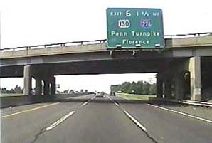 | This is the New Jersey Turnpike (NJ 700) northbound at Exit 6(US 130, I-276, Pennsylvania Turnpike, Florence) in Mansfield Township. Once the interchange between the Delaware Expressway (I-95) and the Pennsylvania Turnpike Delaware River Extension (I-276) is completed, Exit 6 will also be signed as I-95 south Filmed July 23, 2000. |