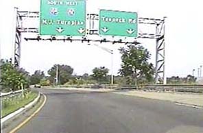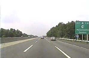 | This is the New Jersey Turnpike (NJ 700) northbound just south of Exit 4(NJ 73, Philadelphia, Camden) in Cherry Hill Township. Filmed July 23, 2000. |