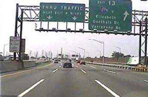 | This is the New Jersey Turnpike car lanes (I-95) southbound at Exit 13(I-278, Elizabeth, Goethals Bridge, Verrazano Bridge) in Elizabeth. Filmed August 7, 2000. |