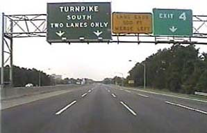 | This is the New Jersey Turnpike (NJ 700) southbound south of Exit 4(NJ 73, Philadelphia, Camden) in Cherry Hill Township. Filmed August 16, 2000. |