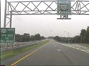 | This is the Piedmont Expressway, US 202 south, north of exit 1(NJ 29, Lambertville, Stockton) in West Amwell Township. Filmed August 3, 2000. |