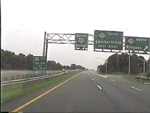 | This is the Piedmont Expressway, US 202 south, at exit 5(NJ 179, Ringoes, Lambertville) in West Amwell Township. Filmed August 3, 2000. |