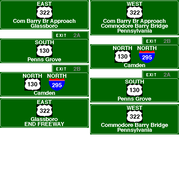 | Commodore Barry Bridge Approach (US 322) Eastbound | Commodore Barry Bridge Approach (US 322) Westbound | |||||||||||