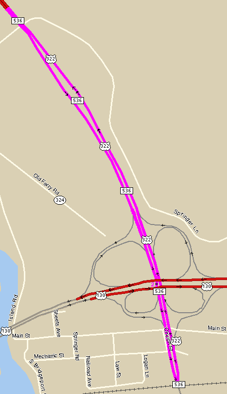 | Connecting Maps US 322 WEST US 130 Other Maps NJDOT's Straight Line Diagram pictures / map / exit list / article (Steve Anderson) Back to New Jersey Expressways and Tollways |