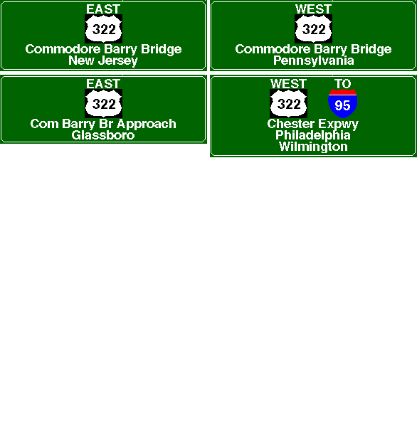 | Commodore Barry Bridge (US 322) Eastbound | Commodore Barry Bridge (US 322) Westbound | ||||||||||