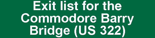 Exit list for the Commodore Barry Bridge (US 322). Exit graphics courtesy of Jeff Taylor and Scott Oglesby. |