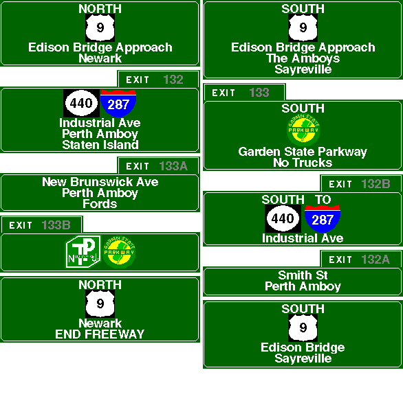 Exit list for the Edison Bridge Approach (US 9). Exit graphics courtesy of Jeff Taylor and Scott Oglesby. |