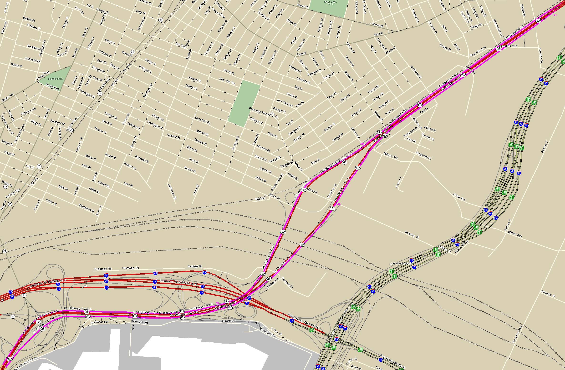 | Connecting Maps US 1&9 US 22 I-78 (Local Lanes) Truck US 1&9 Other Maps NJDOT's Straight Line Diagram pictures / map / exit list / article (Steve Anderson) Back to New Jersey Expressways and Tollways |