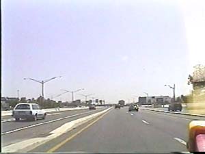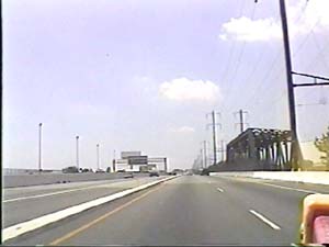 This is the Pulaski Skyway Approach Local Lanes, US 1&9 south, north of exit 50(Wilson Avenue, Newark) in Newark. Filmed July 22, 2001. |