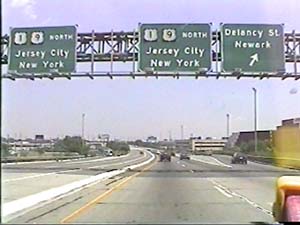 | This is the Pulaski Skyway Approach Local Lanes, US 1&9 north, south of exit 51(North Truck US 1&9, I-95, New Jersey Turnpike) in Newark. Filmed July 22, 2001. |