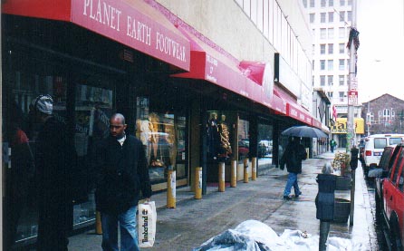 The yellow traffic poles are all that remains of the Branford Theater on Branford Avenue in Newark. It was located across the street from the Adams Theatre, whick still stands though greatly altered.