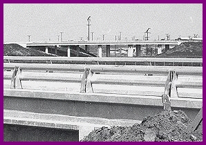 The picture above shows a unique view of the history of US 101. The construction in the foreground is I-5 at Palomar Airport Road and a short section of US 101 freeway is visible in the background. The reason this is unique is because it shows the relative location of the old and new freeways. One year later the section of US 101 freeway, including the AT&SF overhead visible in the pictures had been removed and today there is no trace. Today, even the 1966 bridge in the foreground looks different as the tube guardrail gave way to the modern fence and concrete guardrail as part of widening the bridge from two to six lanes. |