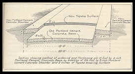 Concrete is paved in In this page I use the terms single, double and sometimes triple slab concrete. What these terms refer to is the number of parallel slabs on a section of highway that usually correspond with the lanes on a road. Concrete is divided into square or rectangular segments to accommodate its expansion and contraction due to changes in weather. This prevents cracking and the ultimate pot holes. From the driver's point of view a two lane concrete road has one line down the middle, which delineates the two slabs. Here are the specifics: