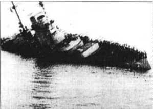 The Szent Istv�n was severely damaged. The torpedoes had damaged the outer hull and the bulkhead between the boiler rooms (the biggest rooms below decks), so the ship was flooding quickly. Only two boilers remained lit, providing steam for electrical generators, and, thereby, electricity for the pumps. The attempt to beach the ship by hauling her to the nearby island Molat, failed. All main guns were turned to the left side to reduce the listing, but that was in vain. The crew received the final, the saddest and most difficult order: "Schiff verlassen! Los vom Schiff! (Abandon ship!)" The Austro-Hungarian newest battleship capsized and sank at 6:12 AM, after three hours of agony, taking along with it 89 sailors, including those who had been keeping the last two boilers lit. The sinking was filmed by a film crew aboard the Tegetthoff. The film was later used for raising money for the Red Cross. There are many copies, and it is one of the two films showing the loss of a battleship on the high seas, the second one showing the sinking of HMS Barham in World War II. After the sinking of the Szent Istv�n the operation was aborted and all the ships returned to Pula, where they remained until the war ended.