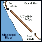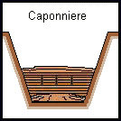 In permanent fortifications a covered way was a gallery with a banquette and interior slope along the crest of the counterscarp that allowed troops to move under cover of the glacis and deliver their fire across the glacis. In the inexact parlance of the Civil War a covered way could be any stretch of parapet with a pathway behind it that was primarily intended to provide cover for troops passing from one field work to another. | ||