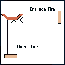 Enfilade fire was delivered from a direction that was parallel to the front of the target so that it crossed the target from one flank to the other. | ||