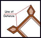 A line of defense was the distance between the capital of a salient angle and the nearest re-entering angle that provided fire across the face of the parapet forming the salient angle. It was usually only applied to bastioned fronts and described the area in front of the work where fire from a flanking face crossed the fire from the face of the salient angle and any curtain or other length of parapet between them. | ||