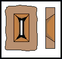 Loop-holes were small openings cut into building walls and stockades or formed from sand-bags and other resistant material along the superior slopes of parapets that allowed troops to fire while under cover. Loop-holes were usually splayed inward to allow troops to point their muskets in all directions. | ||