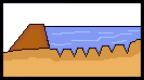 Inundations could be created by damming streams that passed in front of field works. To be an effective obstacle the water level in the pool created by a dam had to be at least six feet deep, when this depth could not be achieved, trous de loup could be dug along the stream bed and allowed to cover with water. This type of obstacle was rarely used in the Civil War, but at Knoxville, Tennessee, sections of the Federal defenses were partially protected by damming First and Second creeks. | ||
