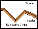 A re-entering angle was formed by two faces of a field work joining with their apex projecting toward the interior of the work. Almost all flanks joined faces of field works at re-entering angles. | ||